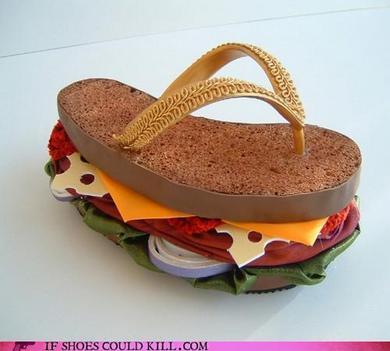 ...Unter anderem die Sandwich Sandalen; Essen ist ja immer modisch :)