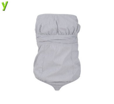 Die höhere Taille verleiht die gewisse Eleganz. Bemerkenswert ist der zuzügliche Stoffstreifen, der die Brustlinie unterstreicht. Das Bustier ist fein drapiert.