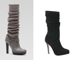 Für das Übergangswetter hat das Modehaus Gucci ein sehr interessantes Angebot vorbereitet, unter anderem Stiefelletten mit gerafftem Schaft aus Socken! Leider kosten diese Meisterstücke 990 USD (also ca. 800 Euro). Neben an zeigen wir ein Angebot von Buffalo Alisha was unser Portemonnaie viel mehr erfreut (139Euro).