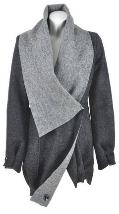 Der Mantel von DOTS besitzt viele Knöpfe und Löcher, dank denen der Mantel auf verschiedenste Art zugeknöpft werden kann. Man ist eigener Künstler seiner Kleidung. Der Kragen kann flach und breit auf den Schultern liegen oder man kann ihn ganz einfach zu einem Stehkragen machen. Das Mantel Ende kann man im innovativem Design zuknöpfen oder in Form des Buchstaben A oder sogar in etwas avantgardistischem Stil. Ähnlich ist es auch mit de n Ärmeln.