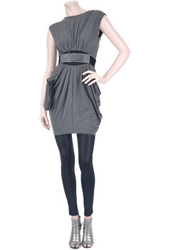 Eine bequeme Tunika in einer neutralen Farbe verbunden mit silbernen Schuhen und einer glitzernden Tasche. Ein ideales Outfit für die Disco!
