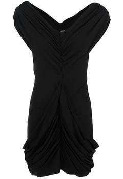 Das geraffte Kleid von DOTS wurde aus einem elastischem Material gefertigt, welches sich perfekt der Figur anpasst (90% Polyamide, 10% Elasthan). Deren Schnitt unterstreicht die Taille und lässt sie zugleich schmaler aussehen. Der V-Ausschnitt passt ideal zu Frauen mit kleiner Oberweite und die kurzen Ärmel, verdecken fein die Schultern.