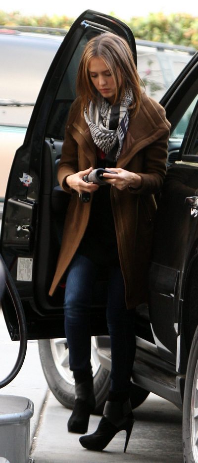 Jessica hat man vor ein paar Tagen an einer Tankstelle gesichtet, wo sie aus dem Auto (Fahrer Seite) mit sehr hohen Absätzen stieg, um kurz zu tanken.