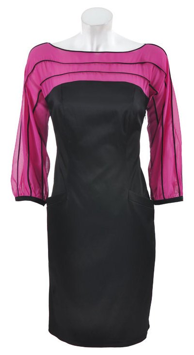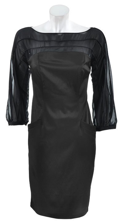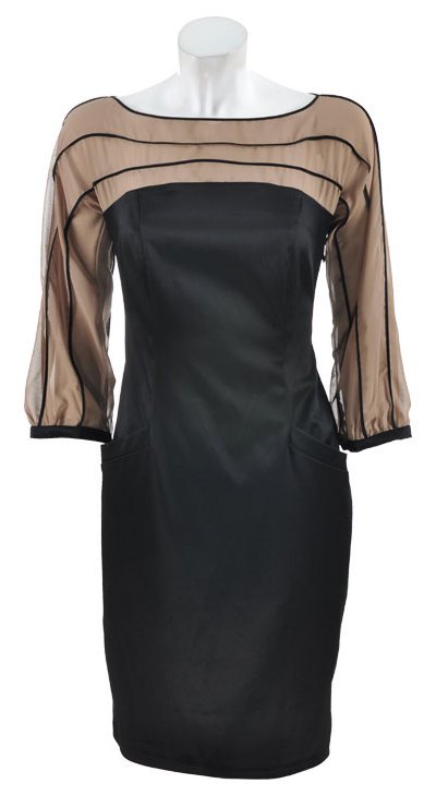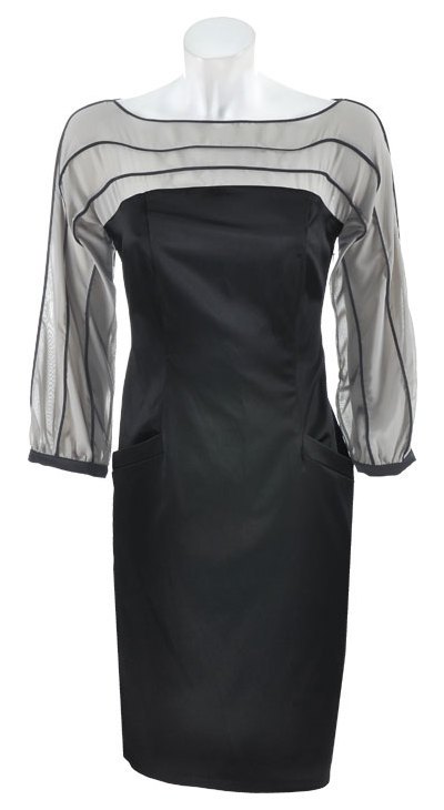 Mein Vorschlag ist ein Kleid von DOTS im Bleistift Schnitt mit einem tollen Ausschnitt und verdeckten Schultern, aber aus einem leicht durchsichtigem Material.
