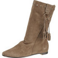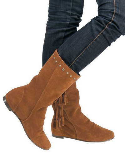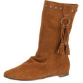 Die kurzen Stiefel sind praktisch. Deren Oberschuh ist zuzüglich mit Fransen (vorhergesagter HIT in der Herbst/Winter Saison 2011) und Nieten verziert. Zusammen lassen sie diesen Schuh im ethno Stil erscheinen.