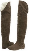 Die Stiefel Aisha mit dem langen Schaft über das Knie reichend, sind vom Modell abhängig, aus welchem Material diese gefertigt sind - entweder aus Veloursleder Imitat oder aus Material. Der Innenschuh ist aus Pelz und die Einlage aus Öko Leder.