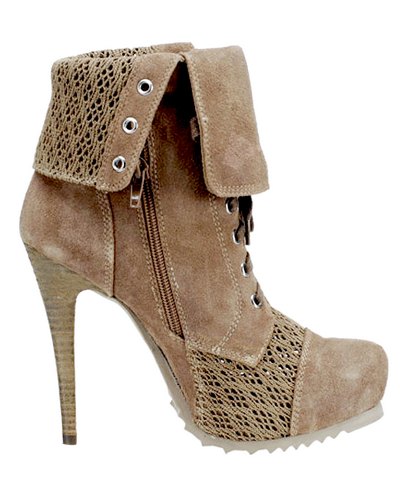 Der Effekt ist dank des Velourleders verbunden mit der verführerischen Spitze und des Absatzes in Holz Optik.