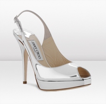 Bei Butyk.de ist die Auswahl von Hochzeitsschuhen auch nicht besonders groß, aber das wird sich ganz sicher in der nächsten Saison ändern. Aber wen wir uns die Kollektion vom Designer Jimmy Choo ansehen, so zeigt dieser ganz besonders interessante Alternativen zu den klassischem weißen Hochzeitsschuhen. Ein ganz großer Hit sind vor allem Schuhe in der Farbe Silber. Hier ein Beispiel von Jimmy Choo, silberne Hochzeit Pumps mit der modischen open toe Schuhspitze: