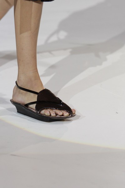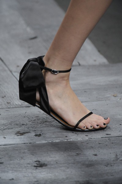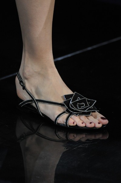 Armani, Chloe, Marc Jacobs, Anna Sui und Karl Lagerfeld - alle diese Designer haben sich für flaches Schuhlaufwerk im Sommer 2011 entschieden. Obwohl des aktuellen Trends "bunter Sommer", war die Mehrheit eher in klassischen Farben. Anna Sui präsentierte flache, aber mit höherem Schaft Sandalen. Armani hingegen hat auf Blumenmuster gesetzt und auf den klassischen Fasson der Ballerinas. Bei Valentino konnte man wunderschöne, elegante Satin Sandalen mit Tüll bewundern, a Marc Jacobs wurde von Asien inspiriert. Die Sandalen aus der Kollektion von Chloe knüpfen an den klassischen Fasson der Römer Sandalen an. Lagerfeld hat auf Eleganz und Klassik gesetzt, ein ideales Schuhwerk für den Abend.