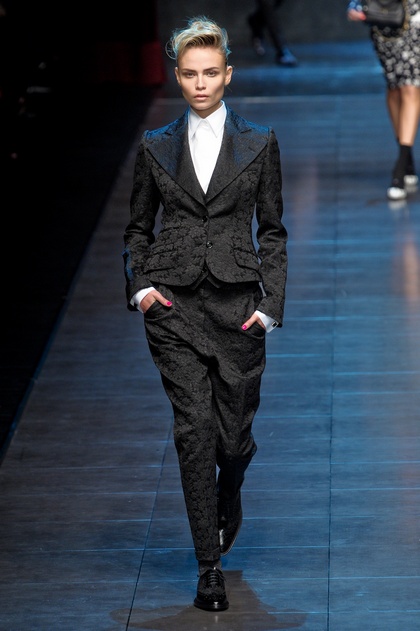 Bei Dolce & Gabbana, weißt nur der Fasson der Hose auf die Tendenz zur Männerkollektion hin.