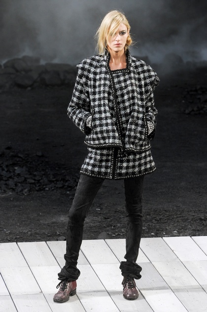 Etwas zurückhaltend, nahm diesen Trend der Meister Karl Lagerfeld bei Chanel auf, dieser präsentierte Jacketts ohne weiße Hemden mit tollem Schuhwerk und Breecheshosen...