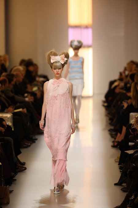 Interessant ist, wer in der ersten Reihe saß: Claudia Schiffer, Olga Kurylenko und Tavi Gevinson - die weltweit bekannte Bloggerin in Sachen Mode . Sie ist erst dreizehn Jahre alt, wird aber von den Diktatoren der Mode als eine der einflussreichsten Personen in dieser Branche bezeichnet.