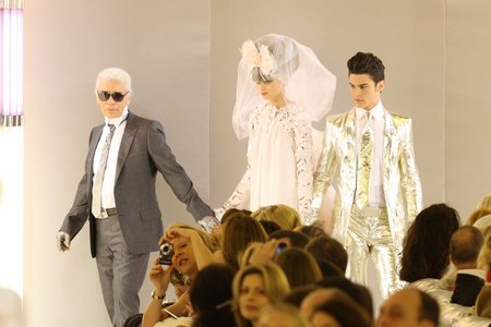 Am Ende wurde ein Brautpaar in Neon-Barock Stil laut Lagerfeld präsentiert.