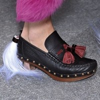 Jede Schule kann sich die Schüler erinnern, die in komischen Sandalen oder Mokassins aus einer anderen Epoche rumliefen. Während der Show wurden alle diese Trends der Teenager gezeigt, wie sehr diese auf die Mode Einfluss hatten und wie schnell das Tempo der Trends vergeht.