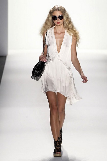 Etwas markanter ans Thema ging Rebecca Minkoff. In ihrer Ausführung muss das kleine weiße mit schwarzen Accessoires verbunden sein im etwas rockigem Stil.