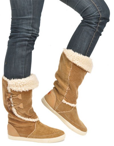 Der weite, gefütterte Schaft ist aus modischem Kord Material gefertigt.