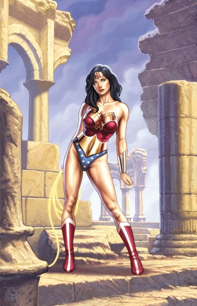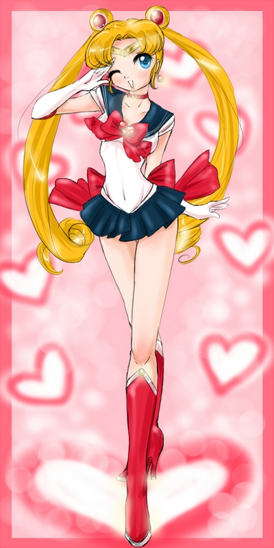 Alle haben lange Beine, lange Haare, große Oberweite, Taille, mini Outfit und... rote Stiefel!