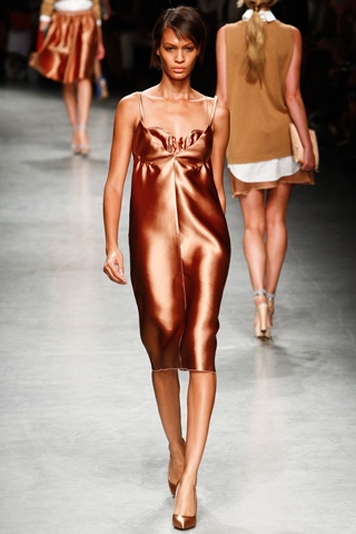 Glänzende Materialien sind wir bereits gewohnt, so werden diese auch weiterhin die Mode regieren, was Elie Tahari zeigt, sowie Gianfranco Ferre und Alessandro Dell'Acqua entwirft für N0.21 eine sensationelle Kollektion.