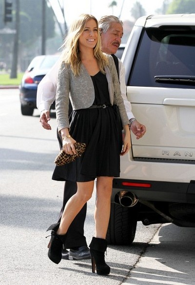 Aber hier ein gutes Beispiel von Kristin Cavallari. Die Schauspielerin hat schwarze Stiefeletten mit Manschetten zu einem schwarzen elegantem Kleid angezogen. Dieses schwere Outfit ist ihr gut gelungen...