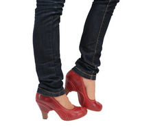 Zwei Sachen gefallen uns bei diesem Absatz, als erstes - der Trichterabsatz lässt den Fuß schmaler aussehen, zweitens - der Absatz ist 9,5 cm hoch und zieht die Blicke an mit dem halb überzogenem Leder.