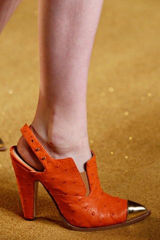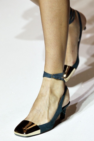 YSL zeigt sich mit einem Block Absatz und eckiger Schuhspitze. Seine klassische Kleider Kollektion wurden durch diese fantastischen Schuhe unterstrichen.