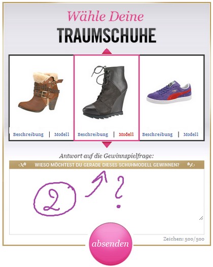 2 - Begründe, wieso du gerade diese Schuhe gewinnen möchtest