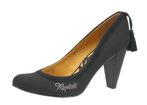 Diese sind zwar in tiefem schwarz, was nicht heißt, dass sie gleich schlicht sind. Der Beweis ist das Firmenlogo, avantgardistisch und zugleich fein. Das pikantere verleiht die Verzierung der Ferse.