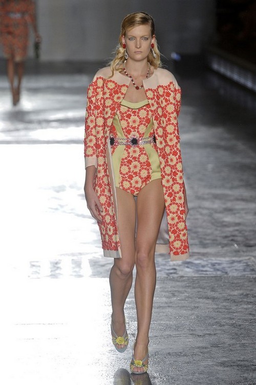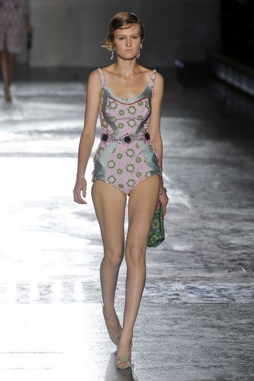 Wunderschöne und exklusive Bademode kann auch als ein Abend Outfit für eine Poolparty angezogen werden. Dies möchte uns auch Miuccia Prada näher bringen und präsentiert ihre Sichtweise des retro Stils!