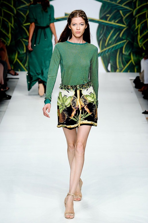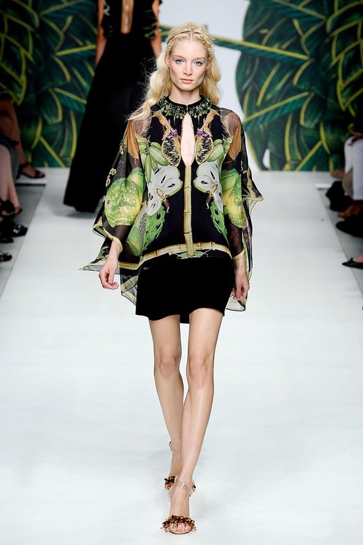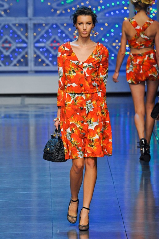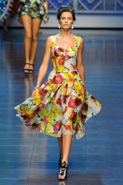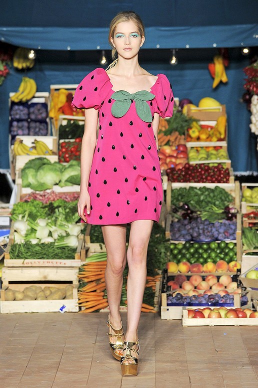 Moschino, spielt wie immer mit der Mode und präsentiert tolle Sommerkleider mit Gemüse Motiven. Bunt, schön und absolut modisch unterstrichen mit tollen Accessoires.