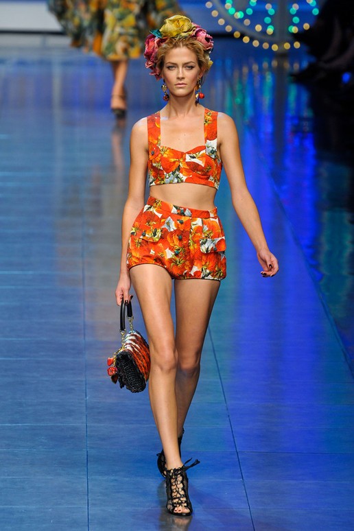 Diesen Trend nehmen wir nicht wörtlich, sondern eher als Inspiration. Einen Hauch italienischer Eleganz zeigen die Designer von Dolce&Gabbana. Die Taille ist mit einem Gürtel unterstrichen und das Bustier sehr elegant ein komponiert. Das Ganze mit tollen Pantoletten und einer Tasche im 60-er Jahre Look! Dieses Angebot ist an alle Figuren Typen gerichtet, aber besonders für Frauen mit weiblichen Rundungen. Ein tolles Outfit für die Stadt als auch für ein Wochenend- Ausflug.