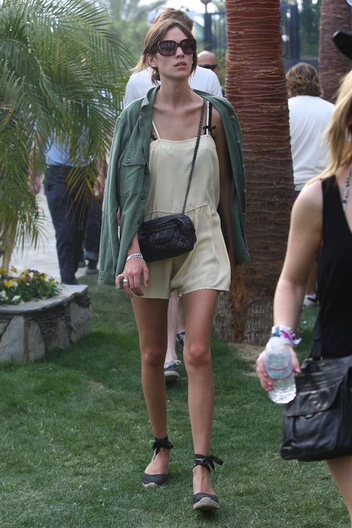 Alexa trägt gerne Sandaletten zum binden. Diese sehen aber nur an sehr schlanken und langen Beinen gut aus. Für etwas weitere Waden schlagen wir neutrale Farben vor mit einem weit ausgeschnittenem Oberschuh.