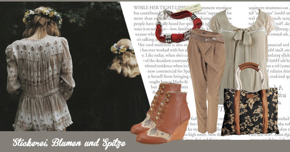 Blumen, Spitze und Stickereien passen zu jedem Frauentyp. Für alle Frauen, die ungern Gold tragen empfehlen wir feine Spitze im Alltag, in der man weiblich und zugleich verspielt aussieht.