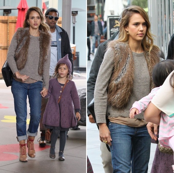 Jessica Alba zeigt uns, wie man mehrere Schichten Kleidung trägt