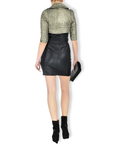 Beim dritten Outfit handelt es sich um ein besonderes und sehr elegantes Kleid Modstron. Zu diesem Kleid kannst du schwarze High Heels Blink anziehen. Das Ganze kannst du mit einer goldfarbenen Tasche Blink und einem Armreif Invuu ergänzen.