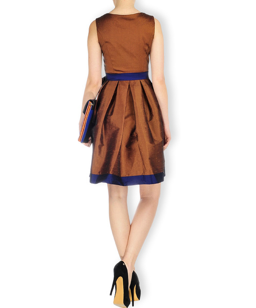 Das zweite Outfit, das wir euch vorstellen möchten ist im romantischen Stil. Das Kleid Fever London haben wir mit einer Tasche in derselben Farbe und einzigartigen High Heels Blink mit einer gelben Sohle ergänzt.