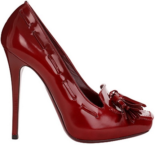 Die Pre- Collection enthält die wichtigsten Inspirationen des Frühlings. Sie sollen uns die Haupttrends der kommenden Saison zeigen. Das Modehaus Alexander McQueen stellt uns seine Schuhe vor, die viele seiner Lösungen enthalten. Klassische, sehr hohe SlipperPeep Toe mit dem Totenkopfmuster und vielen Goldverzierungen, sind die Kennzeichen der Marke. Zu den Neuheiten gehört das Schlangenleder, gelbe, orange und rote Farbtöne des Wildleders und verschiedene Art von Absätzen. Mein Lieblingsabsatz ist der Bananenabsatz.