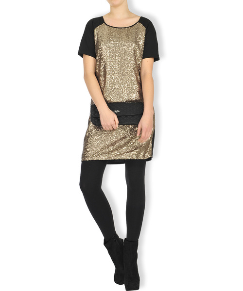 Gold ist eine der wichtigsten Farben in dieser Saison. Gold soll nicht nur der Schmuck sein, sondern auch die Kleidung. Versuche es doch einfach mal – zieh die goldene Tunika von Desperado London an.