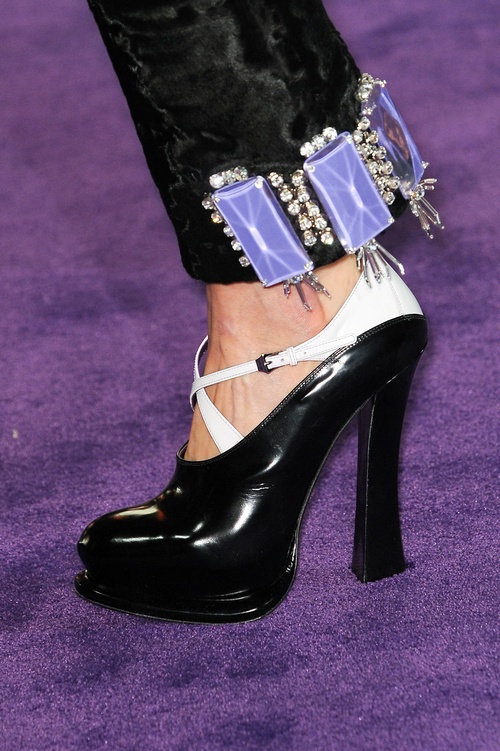 Diese Kollektion zeichnet sich dadurch aus, dass sie viele Verzierungen besitzt, die auf dem Schuhschaft oder an den Hosenbeinen angebracht sind. Sehr einfallsreich, nicht wahr? Seid ihr auf die Idee gekommen, um eine Brosche an das Hosenbein anzustecken, wie bei Prada?
