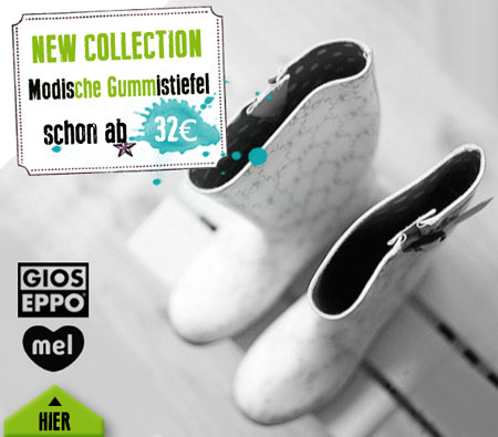 Um bei dem grauen Winter nicht im Hintergrund zu stehen, schlagen wir euch bunte Gummistiefel vor. Die verrücktesten Modelle produziert die Marke Mel. Uns haben am meisten die Gummistiefel mit dem kurzen Schaft und der Schleife gefallen. Es reicht eine Leggings und einen mädchenhaften Mantel dazu anzuziehen und das Outfit ist perfekt.