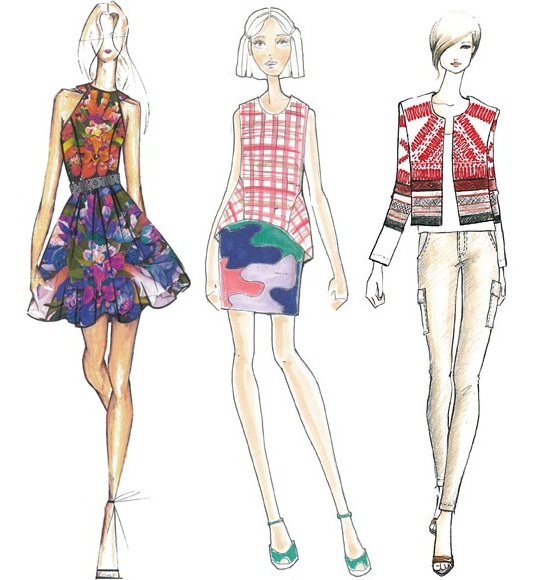 Die wichtigste Frabe (nach Pantone Fashion), wenn es sich um Damenkleidung handelt, ist die Farbe "Tender Shoots". Es ist Limonegrün (mit warmen Gelbton), wie es auf der Skizze der Kollektion vorgestellt wurde Bibhu Mohapatra (Foto unten).
