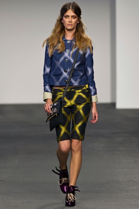 Im House of Holland finden wir Bermuda-Shorts, die mit ihren Mustern an die 60er Jahre erinnern. Durch die interessanten Accessoires und die Halbschuhe kann man auch den Einfluss des Grunge Stils erkennen.