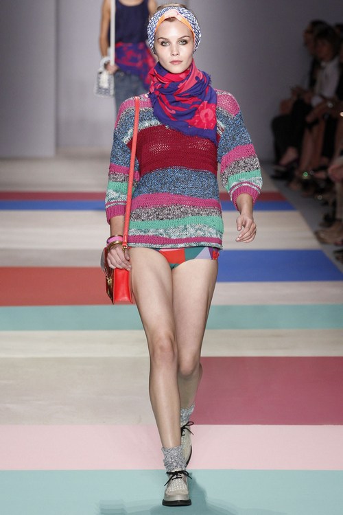 In diesem Jahr tragen wir Streifen vom Kopf bis Fuß. Zum ersten Mal verbinden wir verschiedene Streifen miteinander, wie man es bei Marc Jacobs in der Kollektion Marc by Marc Jacobs sehen kann.