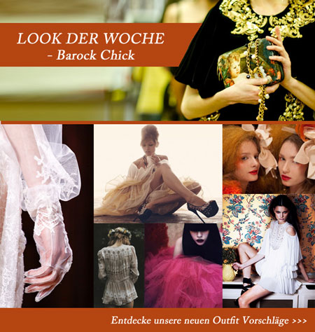Barock Outfits sind derzeit der aktuellste Trend! Und das nicht nur Accessoires, sondern man kleidet sich in diesem Stil von Kopf bis Fuß! Mehr...