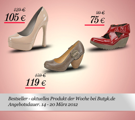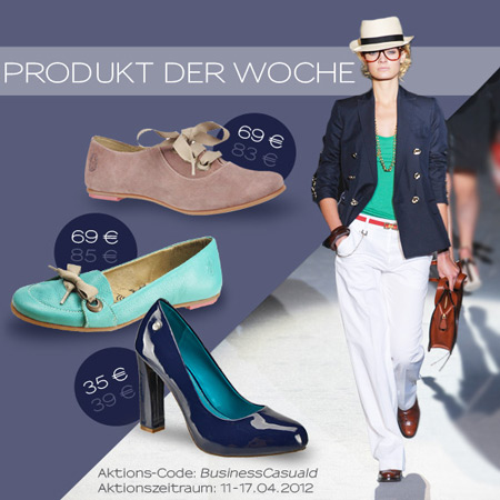 In dieser Woche stellen wir drei elegante Schuhmodelle als unser aktuelles Produkt der Woche vor. Passend zum Büro Dress-Code und wie immer zu einem absolutem Schnäppchen! Mehr...