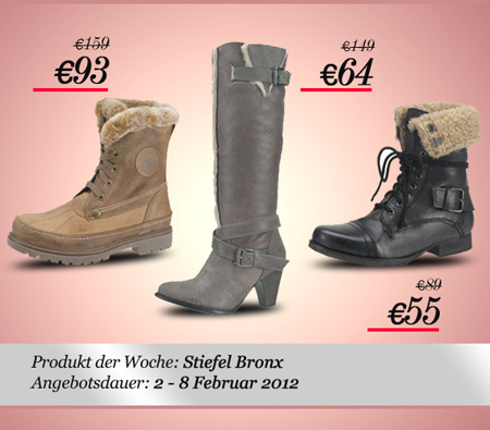 Nur in dieser Woche haben wir drei Schuhmodelle aus der aktuellen Kollektion von Bronx gewählt, die bis zu 25% günstiger sind! Mehr...
