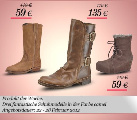 Das aktuelle Produkt der Woche bei Butyk.de beinhaltet diesmal drei Schuhmodelle in der modischen Farbe camel! Mehr...