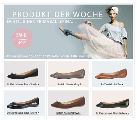 Wunderschöne Leder Ballerinas der renommierten Marke Buffalo - Modell Nicolet sind unser aktuelles Produkt der Woche und das um 20% im Preis gesenkt! Mehr...