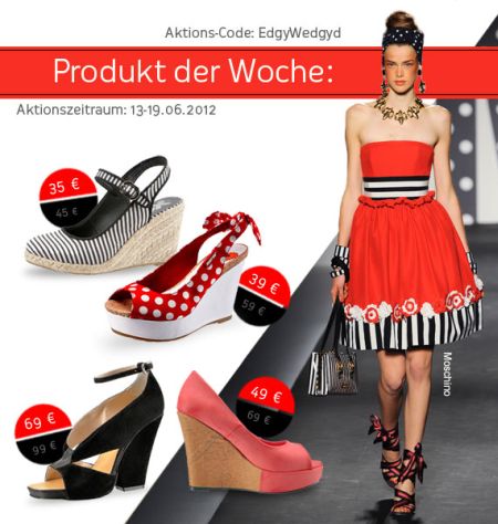 Vier sensationelle Keilabsatz Schuhe: modische Punkt- und Streifenmuster sowie elegante italienische Schuhe aus Leder. Mehr...