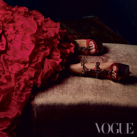Der R'n'B Musikstar hat an einer Fotosession für das Magazin Vogue teilgenommen. Sie trug wunderschöne rote Sandaletten von Alexander McQueen. Mehr...