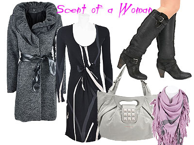 Tasche, Mantel, Schuhe, Kleid, Tuch